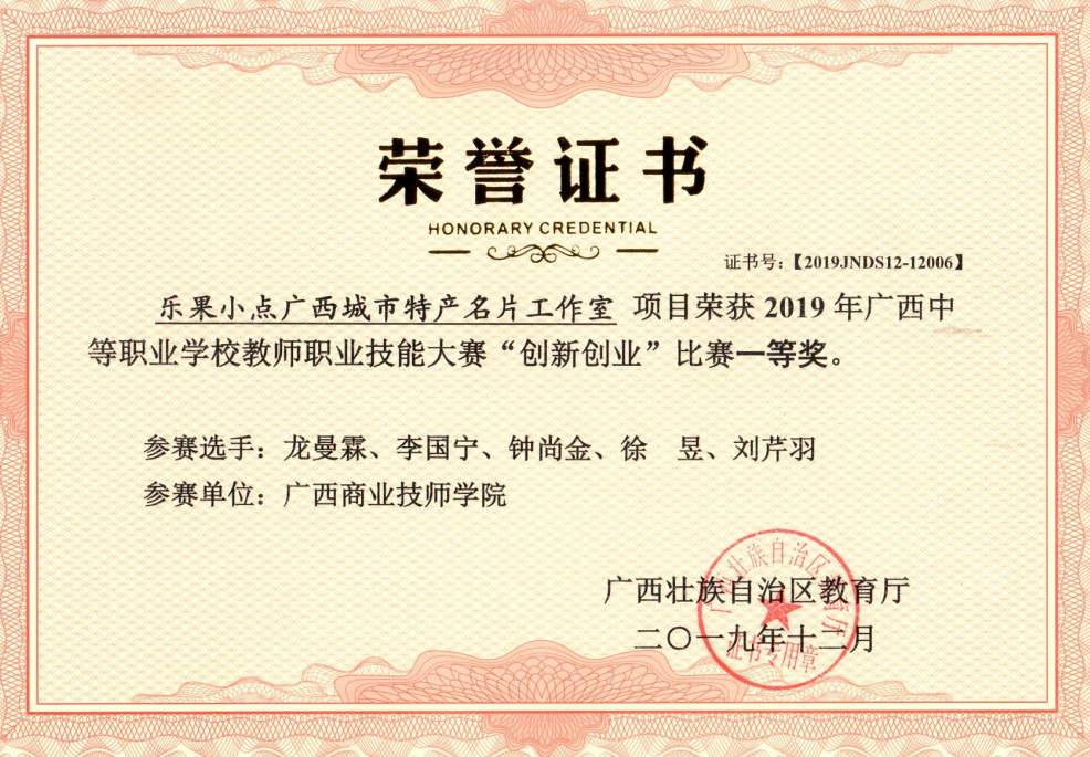 • 廣西職業院校技能大賽電子商務技術 區級一等獎